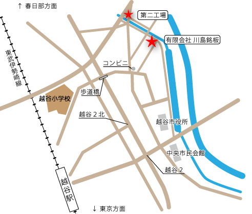 ◇本社・工場 〒343-0812 埼玉県越谷市柳町1-23 ◇第二工場 埼玉県越谷市越谷5-4284 |